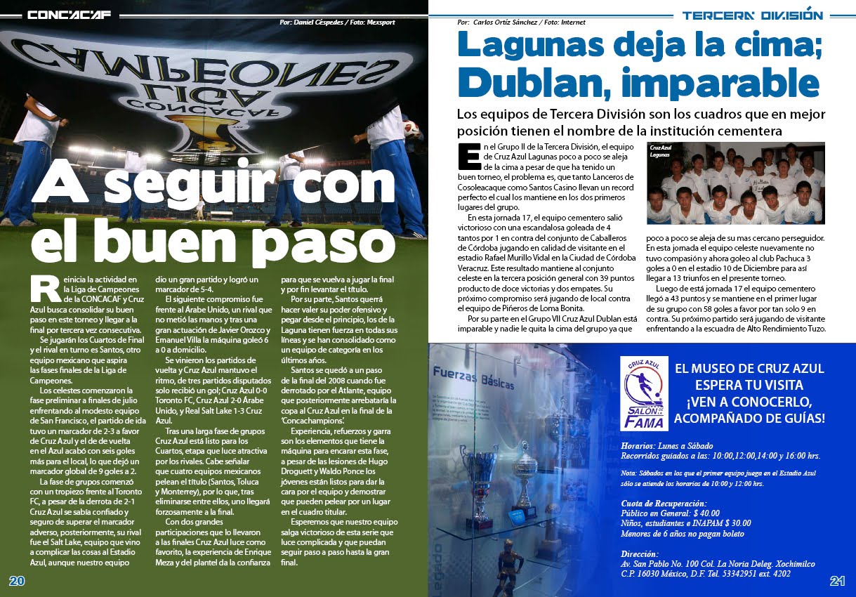 aficion (7) america (2) américa (4) apertura 2013 (1) atlante (3) atlas (4) bicentenario 2010 (1) blu (4) celestes (1) chivas (1) clausura 2009 (1) concachampions (10) concursos (1) cooperativa (1) copa mx (1) corona (1) cruz azul (38) cruz azul hidalgo (33) editorial (1) emanuel villa (2) enrique meza (2) Estadio (1) estudiantes (1) femenil (2) final (2) guadalajara (1) hector pulido (1) indios (1) islanders PR (2) jaguares (3) jasso (6) javier orzco (1) jimmy lozano (1) kalimán guzmán (1) la noria (1) libertadores clausura 2012 (1) liga ascenso (7) liga mx (1) liguilla (1) miguel marin (1) monterrey (8) morelia (4) necaxa (2) número 56 (1) pachuca (5) pertura 2009 (1) porras (2) pretemporada (1) pretemporada cooperativa (3) primera a (5) puebla (5) pumas (6) queretaro (1) regalos (2) revista (12) revista digital (6) salón de la fama (3) salvador cabañas (1) san luis (2) sangre azul (2) santos (5) segunda división (18) seleccion sub-17 (17) siboldi (1) sub-15 (3) sub-17 (2) sub-20 (18) subcampeonisimo (1) Televisión (1) tercera división (20) tienda (1) tigres (4) toluca (4) trivias (1) xochimilco (1) Zona Azul (6)